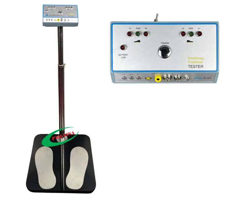 Đo chân: Nhân viên mang giày ESD, đứng trên bàn khử, mỗi bàn chân đặt lên 1 điện cực kim loại. Hệ thống sẽ cho phép kiểm tra và phân biệt riêng biệt điện trở của chân trái và chân phải